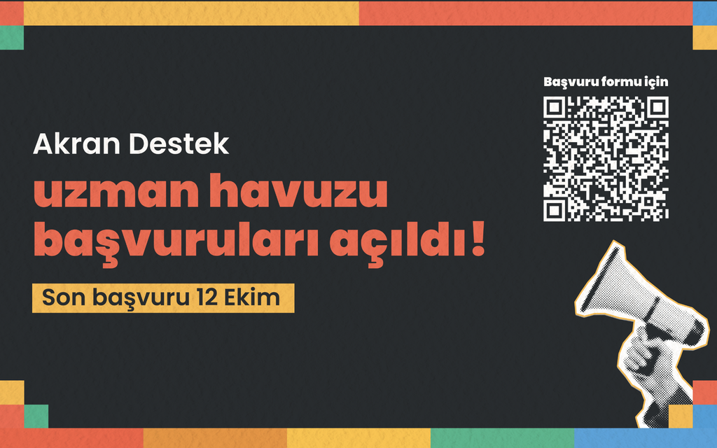 Akran Projesi kapsamında yürütülecek faaliyetlerde görev almak üzere bir uzman havuzu oluşturuyoruz. Siz de uzmanlık alanınızla katkı sunmak isterseniz başvurunuzu bekliyoruz!